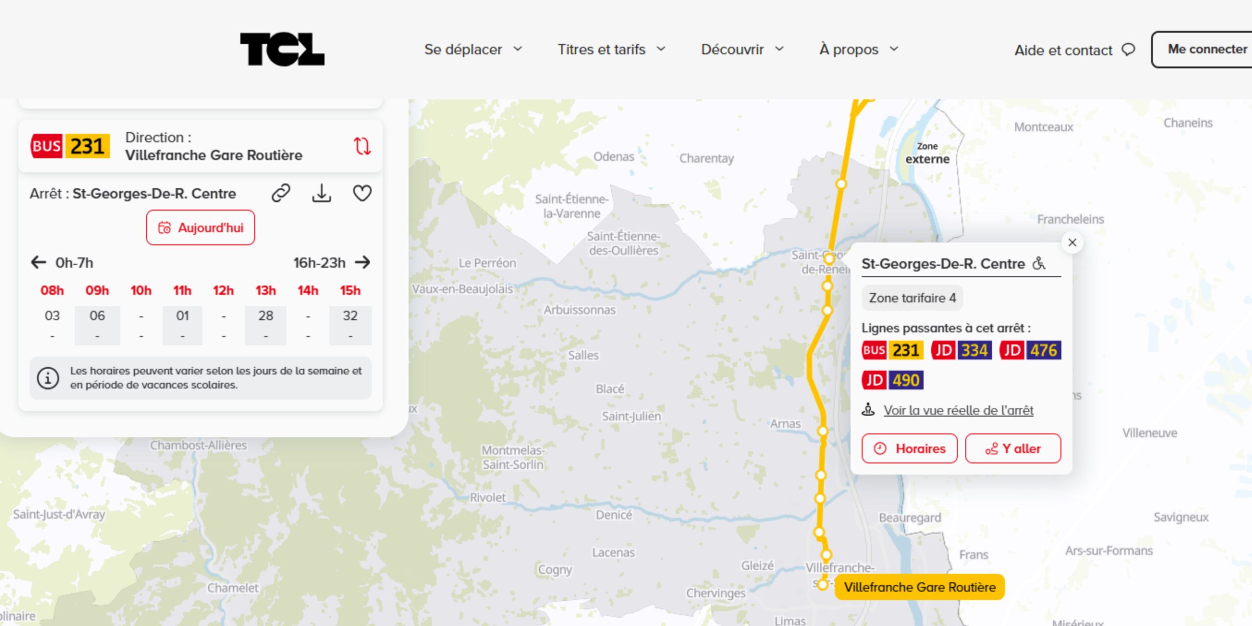 🚌 Lignes interurbaines TCL desservant Saint-Georges-de-Reneins (ex-Cars du Rhône)